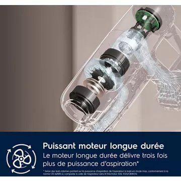 - Détail sur la puissance d’aspiration: : Elle peut varier en fonction du type de sols (parquet, carrelage, tapis, moquette) que vous aspirez et du mode utilisé (standard, éco, boost)