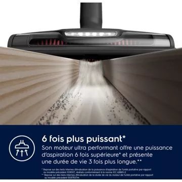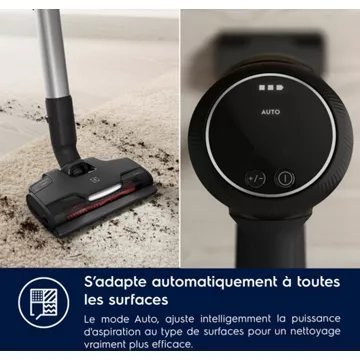 - Détail sur la puissance d’aspiration: : Elle peut varier en fonction du type de sols (parquet, carrelage, tapis, moquette) que vous aspirez et du mode utilisé (standard, éco, boost)