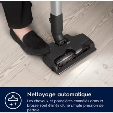 - Brosse motorisée avec éclairage LED : Elle s’adapte à tous les types de sols. Son éclairage LED permet de mieux voir la poussière et plus loin pour un nettoyage plus efficace