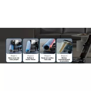 • Capteur de niveau de salissure : oui, adapte la vitesse de rotation du rouleau et le débit d’eau selon la salissure détectée