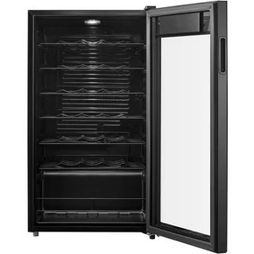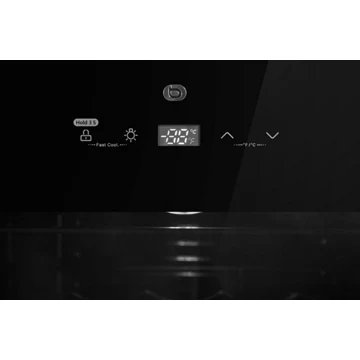 - Type de porte : vitrée, permet de visualiser facilement les bouteilles sans avoir à ouvrir la porte, ce qui réduit la circulation de l’air dans la cave et donc la variation de la température. Le traitement anti-uv protège le contenu.
