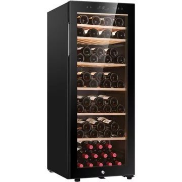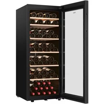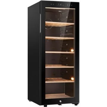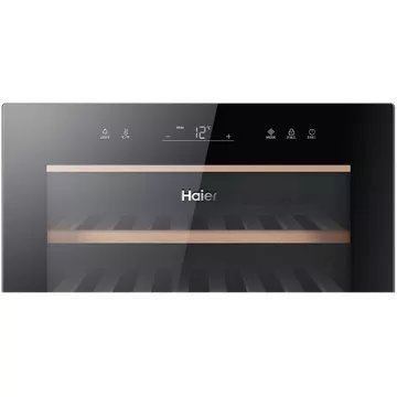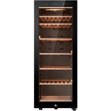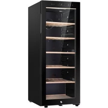 Performante et élégante, la cave HAIER HWS84GA peut accueillir jusqu’à 84 bouteilles, réparties sur 7 clayettes en bois coulissantes. Son panneau de commande électronique externe permet un réglage simple et intuitif, tandis qu’une grille de protection anti-chocs thermiques ajoute une sécurité supplémentaire.