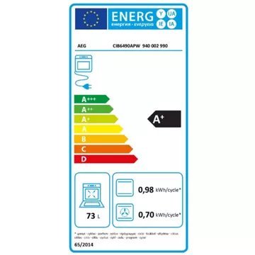 • Valeurs du label énergie : Label énergie A+, Consommation en convection naturelle 0,98 kW, Consommation en chaleur tournante 0,7 kW
