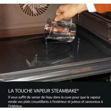 - Avantage du mode avec ajout de vapeur : La cuisson vapeur assistée permet de cuisiner à l’aide de la vapeur, afin d’obtenir des performances de cuisson améliorées. Elle est tout particulièrement recommandée pour le pain et la pâtisserie