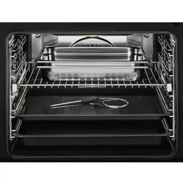 - Rails téléscopiques : ils permettent d’accéder à vos plats en les faisant coulisser en dehors de l’enceinte de cuisson en évitant les risques de basculement. Vous pourrez arroser confortablement votre rôti ou retourner facilement vos plats sans risque de brûlure.