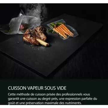 - Avantage de la cuisson sous vide : Garantie une cuisson uniforme, sans que les aliments ne dessèchent tout en conservant leurs nutriments et saveurs