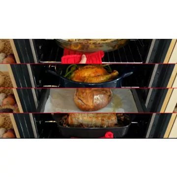 - Avantage pyrolyse : La température intérieure du four monte jusqu’à 500°C et détruit les graisses, vous n’avez plus qu’à récupérer les cendres à l’aide d’un torchon et le tour est joué !