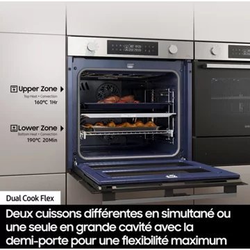 Le four pyrolyse SAMSUNG NV7B6795JAK Bespoke sera votre nouvel équipement pour ne rater aucune de vos cuissons. Il est équipé de 2 cavités et propose 10 modes de cuisson, dont la chaleur tournante, pour plus de puissance, et la cuisson 100 % vapeur. Votre four vous sera livré avec un plat 2-en-1 à vapeur. Grâce à la fonction vapeur assistée (injection de vapeur), vous pourrez faire cuire des volailles ou autres viandes à la perfection !