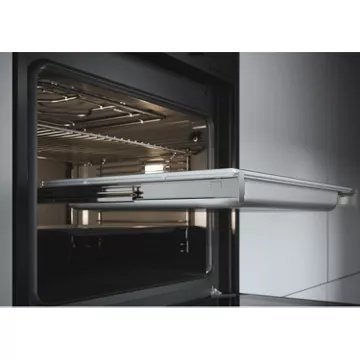 - Rails téléscopiques : ils permettent d’accéder à vos plats en les faisant coulisser en dehors de l’enceinte de cuisson en évitant les risques de basculement. Vous pourrez arroser confortablement votre rôti ou retourner facilement vos plats sans risque de brûlure.