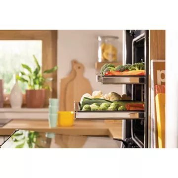 - Rails téléscopiques : ils permettent d’accéder à vos plats en les faisant coulisser en dehors de l’enceinte de cuisson en évitant les risques de basculement. Vous pourrez arroser confortablement votre rôti ou retourner facilement vos plats sans risque de brûlure.