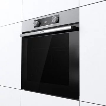 - Avantage de la chaleur tournante pulsée : le four est équipé d’un ventilateur et d’une résistance circulaire situées sur la paroi arrière du four, pour une cuisson simultanée de différents plats sur plusieurs niveaux