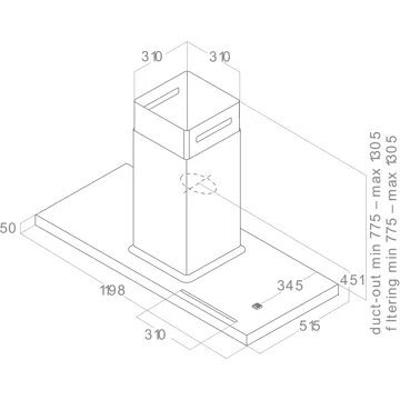 - Choisir la bonne largeur : pour une extraction efficace, la hotte doit être au moins aussi large que la table de cuisson. De plus, en choisissant la bonne largeur, vous évitez les dépôts de graisse sur la crédence et les murs de la cuisine.