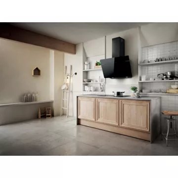 - Type de hotte : décorative murale inclinée, combine style et fonctionnalité. Sa conception permet de mieux gérer l’espace au-dessus de la zone de cuisson. Elle évite de devenir un obstacle dans l’espace de cuisson et n’obstrue pas la vue, rendant plus facile la préparation des plats.
