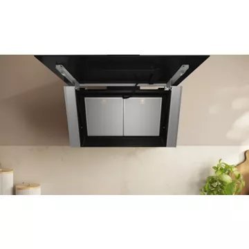 - Type de hotte : décorative murale inclinée, combine style et fonctionnalité. Sa conception permet de mieux gérer l’espace au-dessus de la zone de cuisson. Elle évite de devenir un obstacle dans l’espace de cuisson et n’obstrue pas la vue, rendant plus facile la préparation des plats.