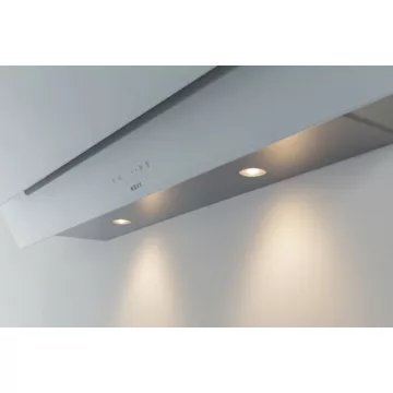 • Type de hotte : décorative murale inclinée, combine style et fonctionnalité. Sa conception permet de mieux gérer l’espace au-dessus de la zone de cuisson. Elle évite de devenir un obstacle dans l’espace de cuisson et n’obstrue pas la vue, rendant plus facile la préparation des plats.