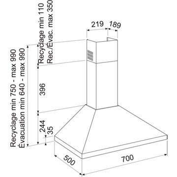 • Type de hotte : : décorative murale – évacuation et recyclage