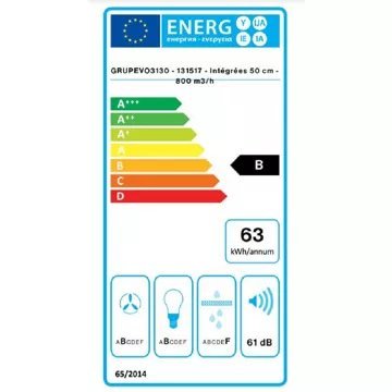 - Type de hotte : encastrable, s’intègre parfaitement dans les armoires, préservant l’esthétique de la cuisine. Elle offre une extraction efficace des fumées et odeurs tout en restant discrète. Son design discret et sa performance font d’elle un choix idéal pour les cuisines modernes soucieuses de leur apparence.