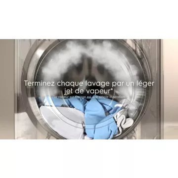 - Lavage vapeur en profondeur : oui, idéal pour une hygiène parfaite et les personnes allergiques, élimine jusqu’à 99,9% des bactéries de votre linge grâce à la combinaison de la vapeur et du lavage à haute température.