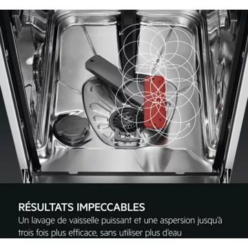 - Tiroir à couverts : Oui, il est placé dans la partie haute du lave-vaisselle et permet de bénéficier de 25% d’espace supplémentaire dans le panier inférieur