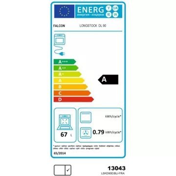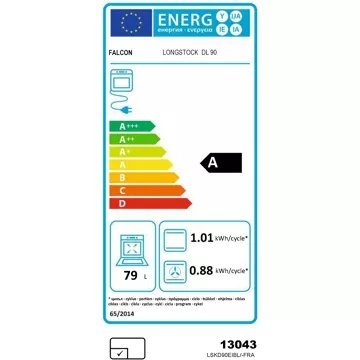 - Valeurs du label énergie : Label énergie A, Consommation en convection naturelle 0,88 kW, Consommation en chaleur tournante 0,79 kW