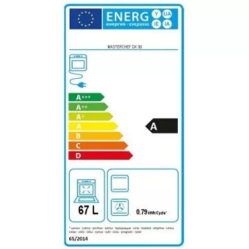 - Valeurs du label énergie : Label énergie A, Consommation en convection naturelle 0,79 kW, Consommation en chaleur tournante 0,88 kW
