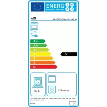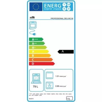 - Valeurs du label énergie : Label énergie A, Consommation en convection naturelle 0,79 kW, Consommation en chaleur tournante 0,88 kW
