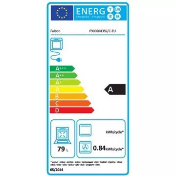 • Valeurs du label énergie : Label énergie A, Consommation en convection naturelle 0,79 kW, Consommation en chaleur tournante 0,84 kW