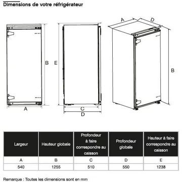 - Installation : porte sans débord, le réfrigérateur peut être installé contre le mur