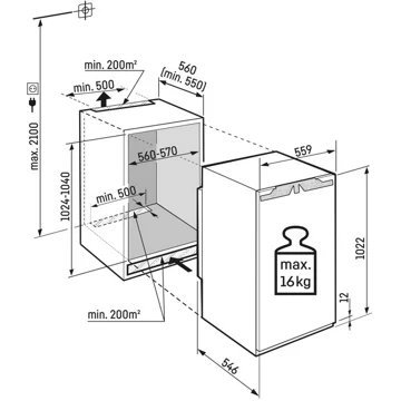 - Dimensions d’encastrement l x h x p : 56 x 102.4 x 55 cm