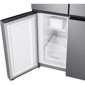 Les poignées intégrées et le design French Door du réfrigérateur SAMSUNG RF48A401EM9 apportent une élégance raffinée à votre cuisine, tandis que l’écran externe et les commandes électroniques assurent une utilisation intuitive.