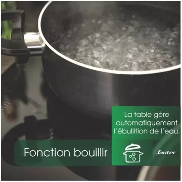 Pour chaque foyer, la table aspirante SAUTER SPI2847BH propose 14 positions de cuisson, de quoi régler la température pour chaque recette avec une grande précision. Parmi elles, vous pouvez bénéficier du mode Boil qui maintient le liquide à frémissement : une fonction idéale si vous devez interrompre ponctuellement la préparation, pour y revenir plus tard.