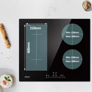 21*40cm Flexizone – Les foyers à gauche pourront combiner en une zone modulable, sa large surface de cuisson s’adapte à tous vos plats et peut accueillir les récipients de grande taille, surtout idéal pour les barbecues.