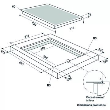 - LxHxP (encastrement) : 55.8 x 5.6 x 48.8 cm