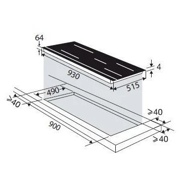 - LxHxP (encastrement) : 90 x 6.4 x 49 cm