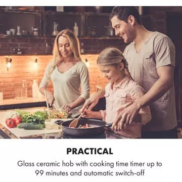 - Type de table : vitrocéramique, entretien très facile grâce au revêtement en verre trempé.