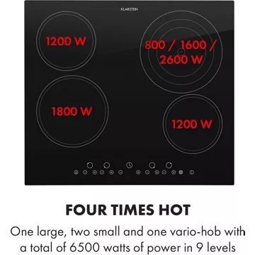 Puissance : 6500 W répartis sur 4 foyers